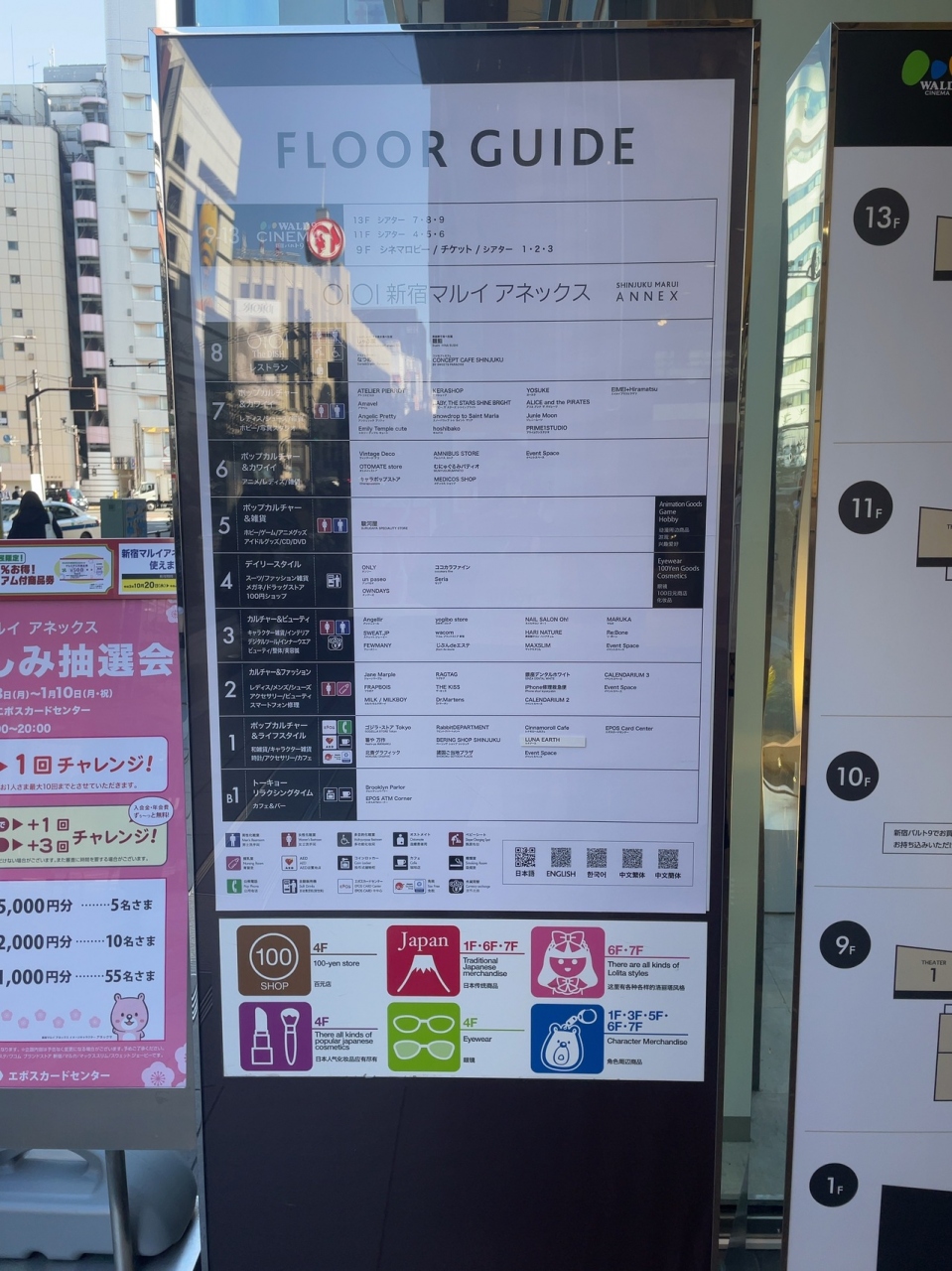 新宿三丁目の交差点からすぐの場所に立地し、WALD9というシネコンも入るショッピングモールです。他のマルイと同じくレディース向けのお店が多いのですが、ドクターマーチンの専門店があるため、よく覗きに行きます。雑貨なども多く揃えられているため、ブラブラ見て回るのも悪くないと思います。