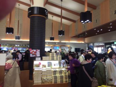 おそらく大涌谷で一番大きなお店だと思います。寿命が延びるという黒たまごが、そのまま建物の名前になっています。店内は所狭しとお土産やらが並んでおり、週末ともなると多くの人でごった返しています。名物の黒たまごは、店外で並んで買うことも出来ますし、店内の壁沿いにずらっと並んで買っている人もいました。