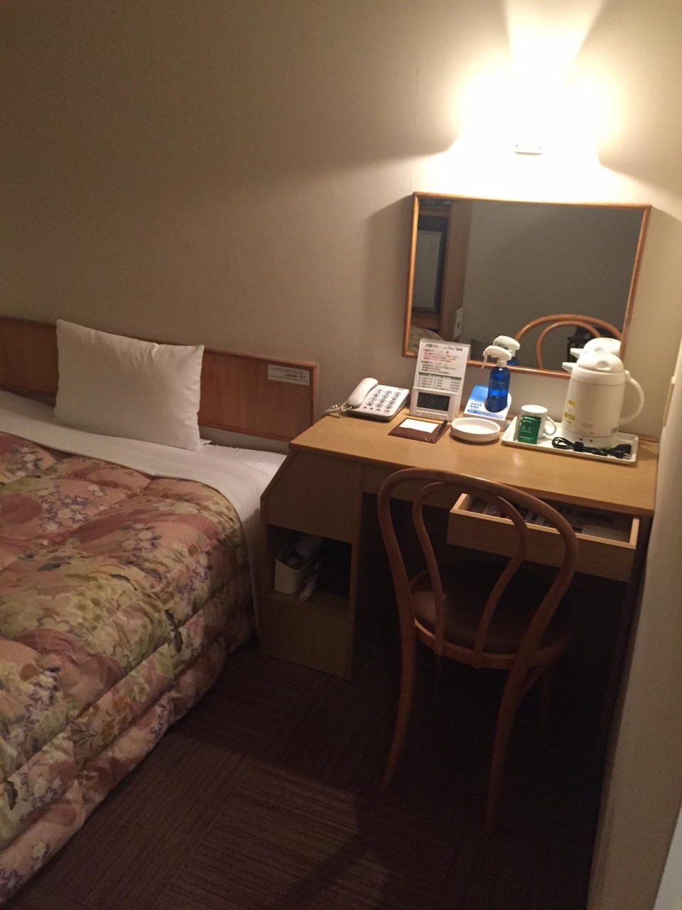 一方で、成田空港利用者が多いと分かっているにも関わらず、部屋でスーツケースを広げられるスペースがなかったことが不満でした。ベッドの上か、入口入ってすぐの通路(ギリギリ)しかありませんでした。