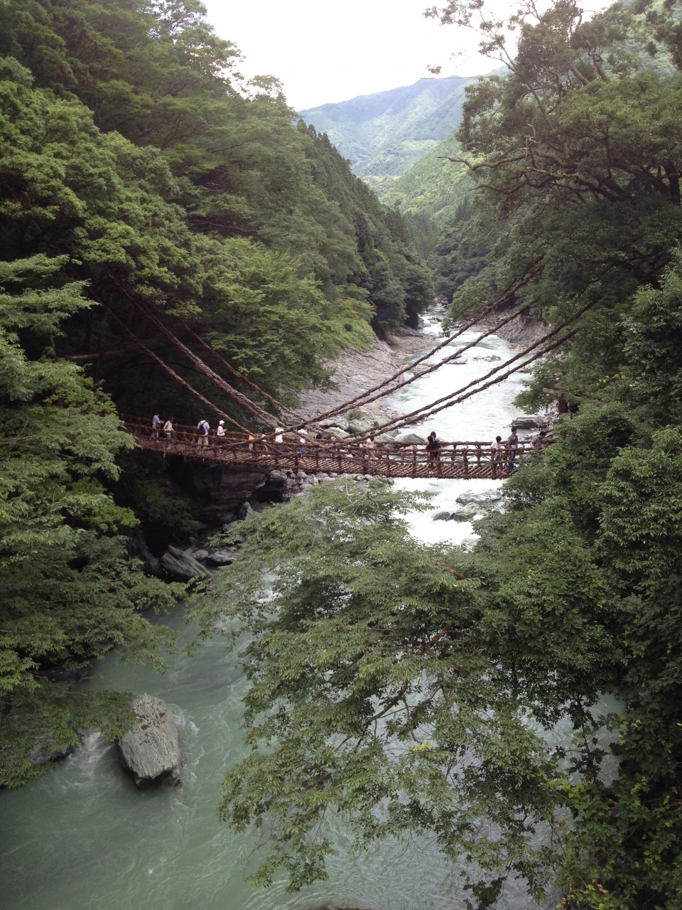 徳島県の山奥、祖谷という地区にある有名な橋です。実際に「シラクチカズラ」という植物を編んで橋を作っているそうで、数年に1度新しいものに付け替えているそうです。(渡る前にそれを聞いたので少し緊張しました)