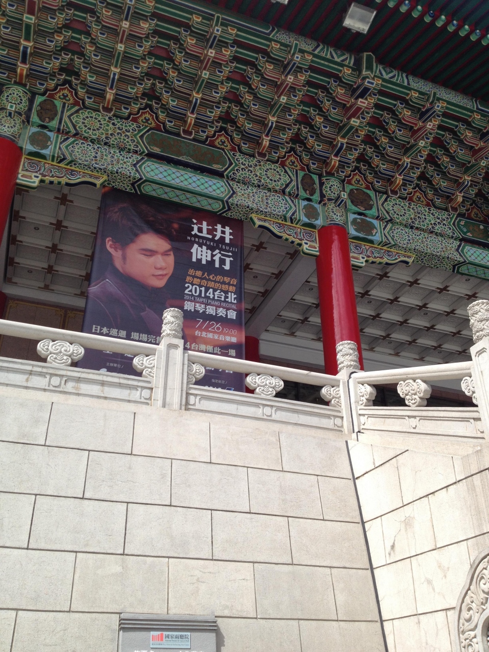 中正記念堂などがある中正広場(中正公園)にあるとても特徴的な建物です。1Fにはカフェやショップなどもあり休憩するのにも最適な場所です。ちょうど行った時には日本の辻井伸行さんの公演間近で、大きな広告が張り出されており思わずシャッターを切りました。中には入っていませんが、聞いたところによるととても広い会場とのことでした。