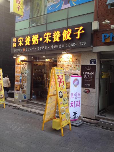 ソウルロイヤルホテルに宿泊していましたので、胃に優しい朝食を・・・と思い、すぐ近くにあったこのお粥屋に入りました。ソウルといえばお粥も有名ですし、場所も明洞のど真ん中ということもあり、周りは日本人観光客だらけでした。ただ、観光客価格ですので、お粥にしては少し高めの料金設定です。
