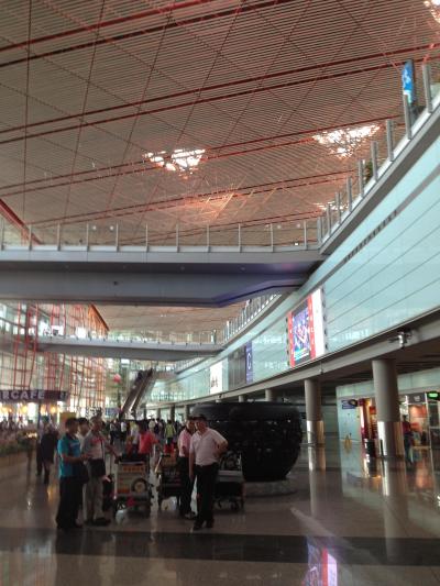到着して思った印象は「広い」の一言でした。北京オリンピックが開催された影響なのでしょうが、想像以上にとても広く綺麗に保たれた空港でした。国際線だけでも大きいのですが国内線も就航しているようで、それぞれのターミナル間はモノレールのような乗り物で移動をします。