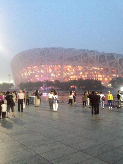 橋を渡るに連れて、いわゆる鳥の巣がどんどん大きくなってきますので鮮明な写真が撮れるようになります。私は夕方過ぎ、暗くなり始めた頃に行ったので、ライトアップはされていましたが近くまで行かないと鮮明には写真が撮れませんでした。橋の途中には写真を撮ってくれる業者?アルバイト?のような人が結構しつこく声を掛けてきますが、無視でOKです。- 旅行時期