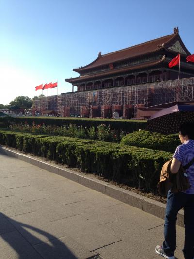 ご存じ天安門広場の前にそびえ立つ、毛主席の肖像画が中心に据えられた天安門です。テレビなどでもよく写される風景かと思いますが、時期によっては門の修繕をやっているようで訪問した際は毛主席の肖像画以外の部分が隠れていました。(その週の週末に向けて修繕していたようで、工事の片鱗は綺麗になくなっていました)