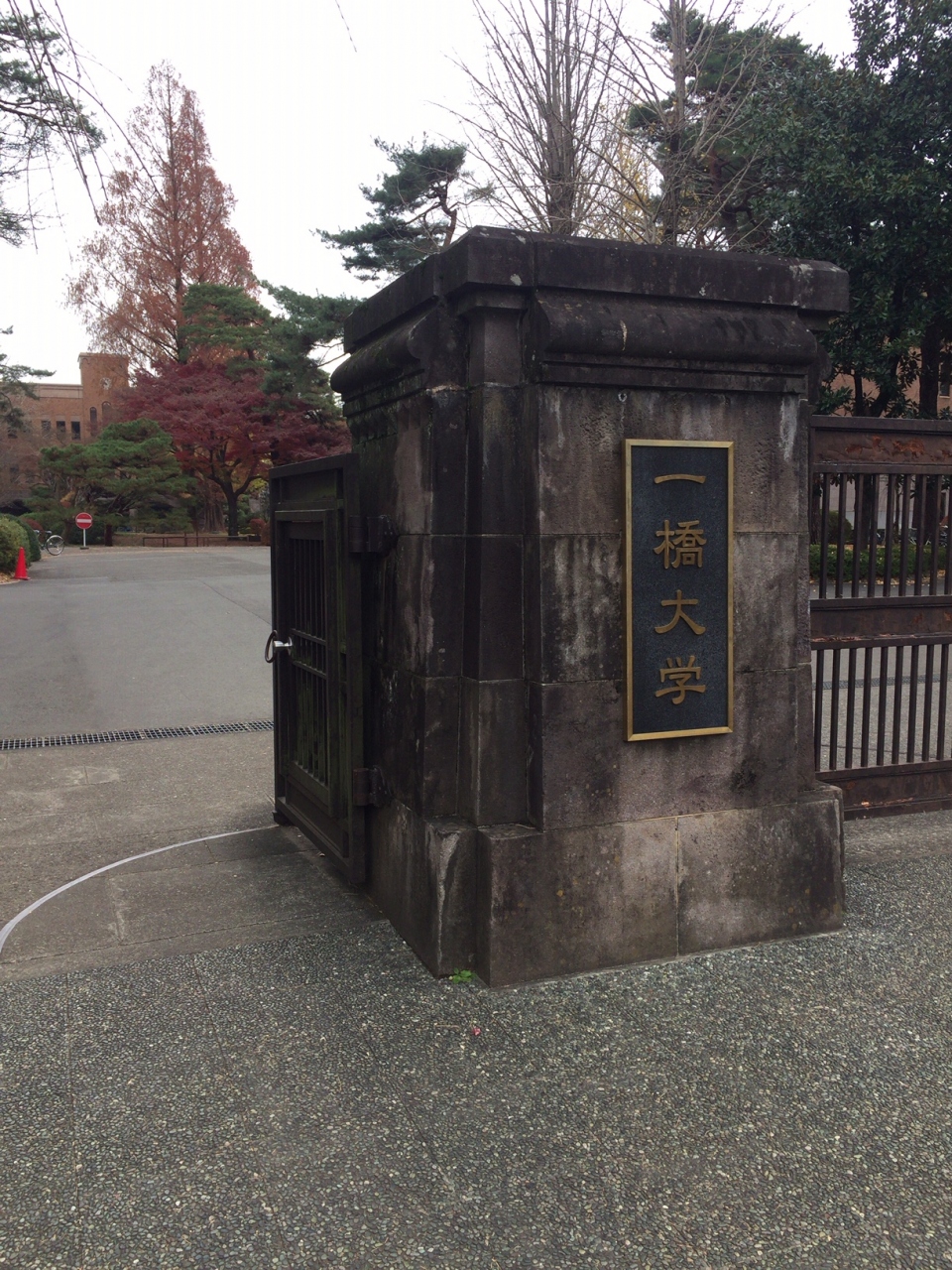 JR国立駅から徒歩5分ほど、週末であれば学生の出入りもそれほどありませんので若干ひっそりした感じの佇まいです。入口に常時守衛さんがいますので、近隣の人たちの憩いの場となっている面もあると思います。少し中に入って行くと、サークルなどでしょうかテニスコートから元気な声が聞こえてきます。