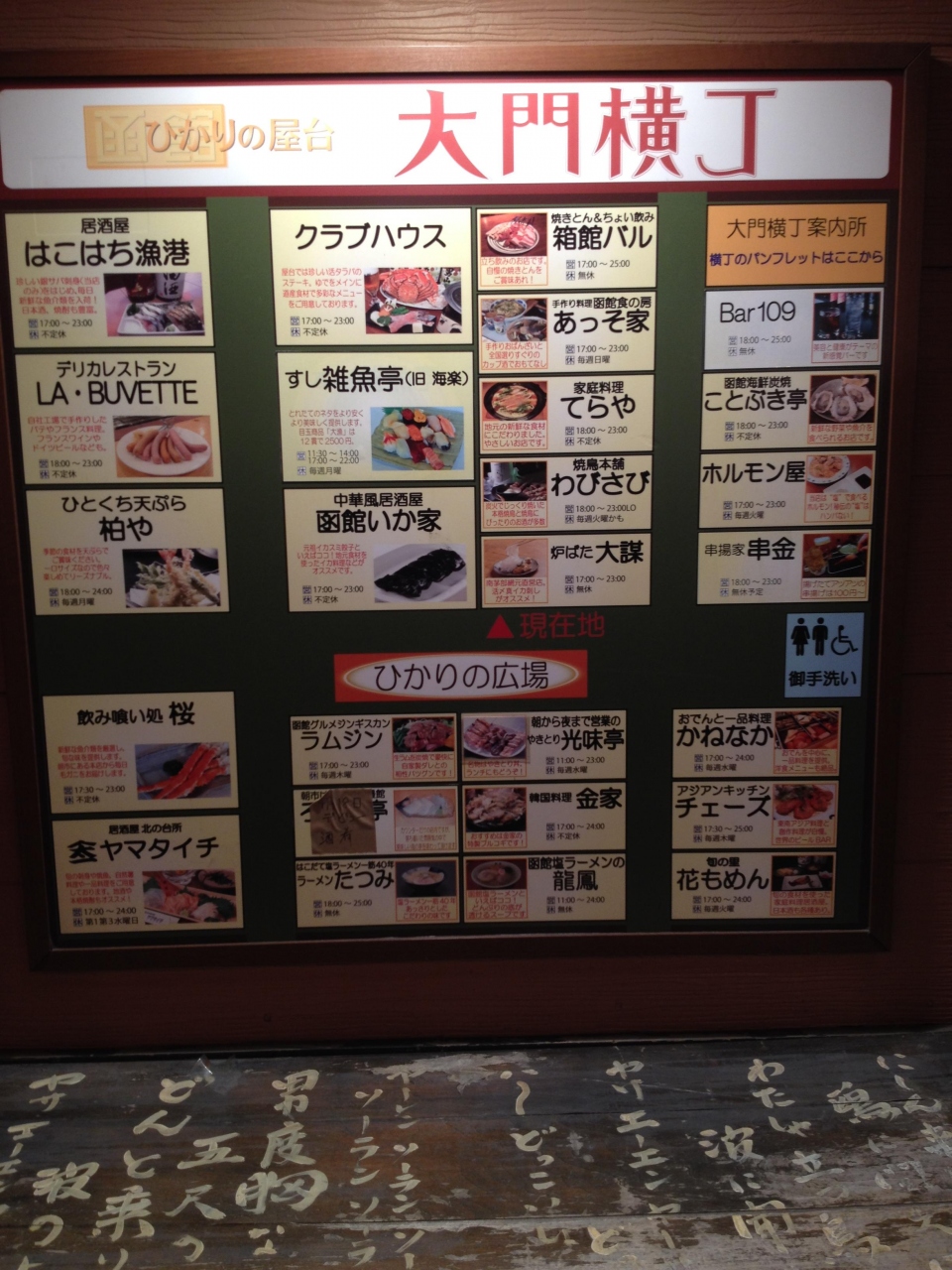 函館駅からほど近く、函館名物などを取り揃えた屋台村のような場所です。お店は15件程度でしょうか、どの店もあまり広くなくてイイ意味でこじんまりした温かいお店が揃っている印象です。観光客だけでなく地元の人も結構来ているようですので、運がよければ観光スポットなどの話が聞けるかも知れません。