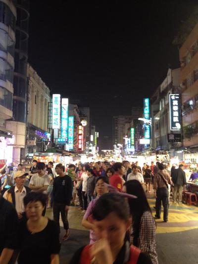 台北の夜市と比べて、幅の広い道いっぱいにお店が並び人が行き交っているため、とても賑やかです。台北の夜市は結構行きましたが、そのどれと比べてもスケールが大きいように感じました。並んでいるお店は他の夜市と変わらない気がしましたが、台北と比べて海鮮を扱ったお店が多いように感じました。