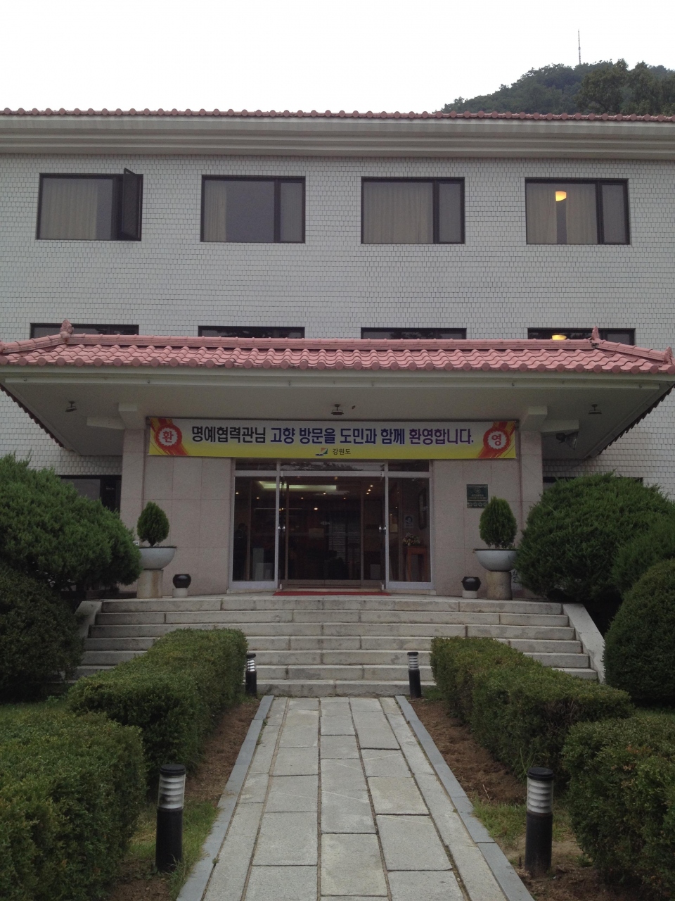 春川の繁華街エリアから坂をどんどん登っていった先にこのホテルがあります。車を降りてからも更に階段、もしくはスロープで登っていく必要がありましたので、当日スーツケースだったこともあり結構大変でした。