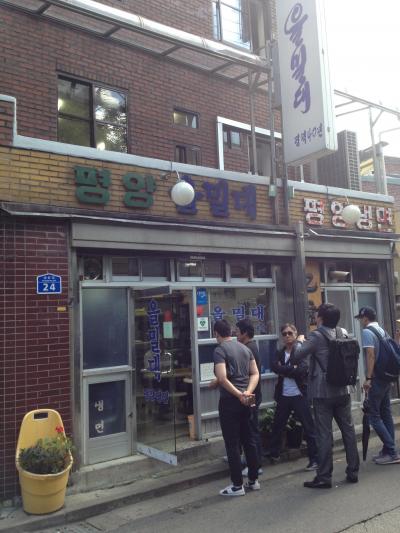 ガイドさんに案内され車で移動した先にあった、乙密台(ウルミルテ)というお店です。まだ12時前なのに5名ほどのお客さんがお店の前で並んでいました。その後、私たちも並びましたが、近隣から歩いてくる人、タクシーで来る人など、どんどん人がお店に集まってきます。