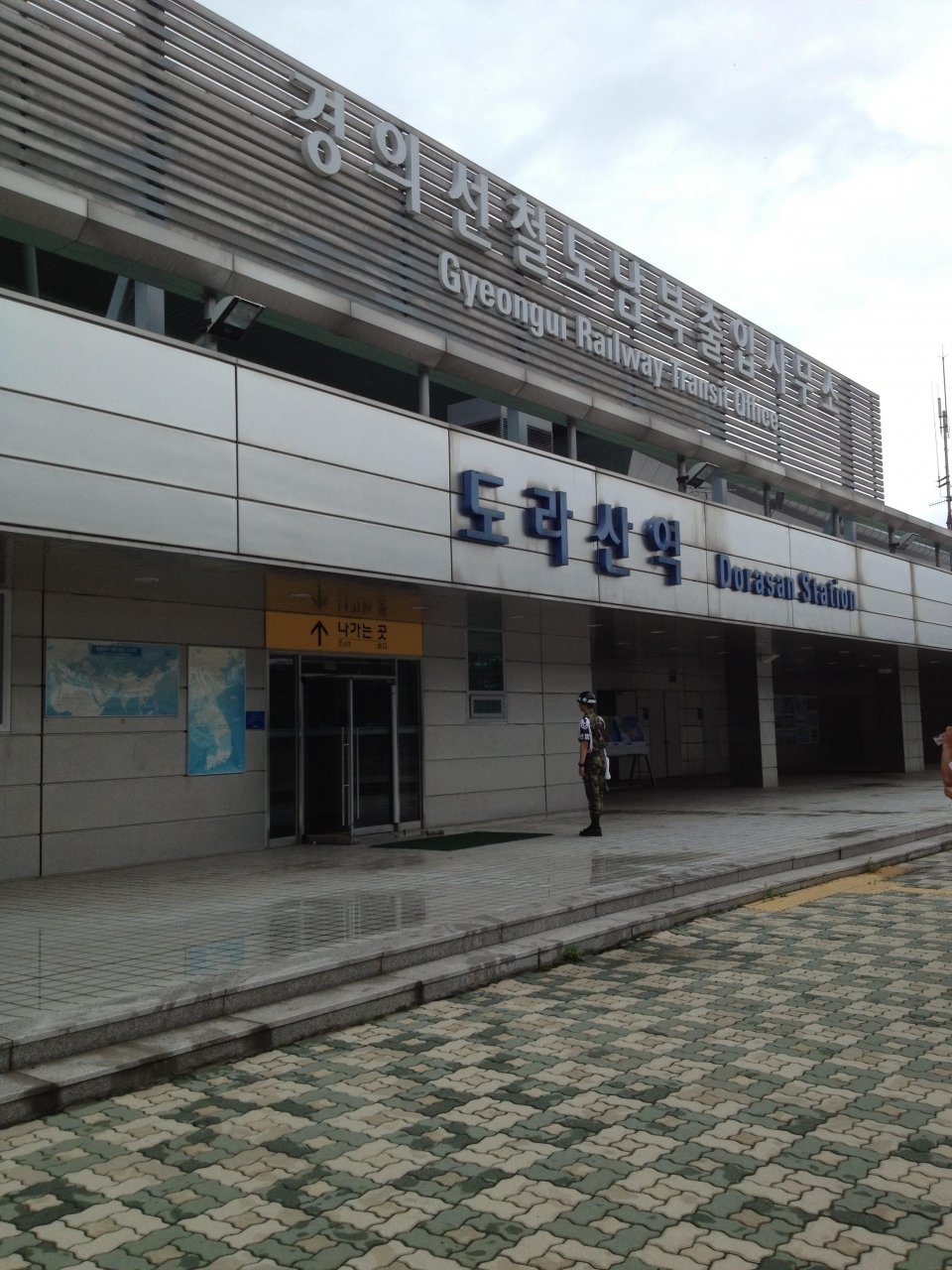 この駅はDMZ内にあるため、実際には1つ前の駅でセキュリティチェックなどを受ける必要があるとのこと。また、ここまで電車で来ても片道で降りることは出来ず往復して帰らないといけないとの説明をガイドさんより伺いました。たしかに到着した電車から降りてきたのは軍服を着た人が数人だけで、一般の人は乗っていませんでした。今後、南北間が電車で繋がれると重要な拠点となり、テレビなどで見かける日が来ると思いますので、それまで記憶に留めておこうと思います。- 旅行時期