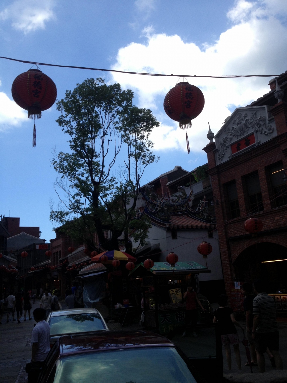 台北中心街からタクシーで30分ほど掛かったと思いますが、「豆腐で有名な」深坑老街を訪れました。山あいに古い町並みが再現されていて、入り口から早速豆腐料理などの屋台が並んでいます。端から端まで15分ほどの距離だと思いますが、食堂形式のお店や屋台、お寺も数件あり多くの人が行き交っていました。