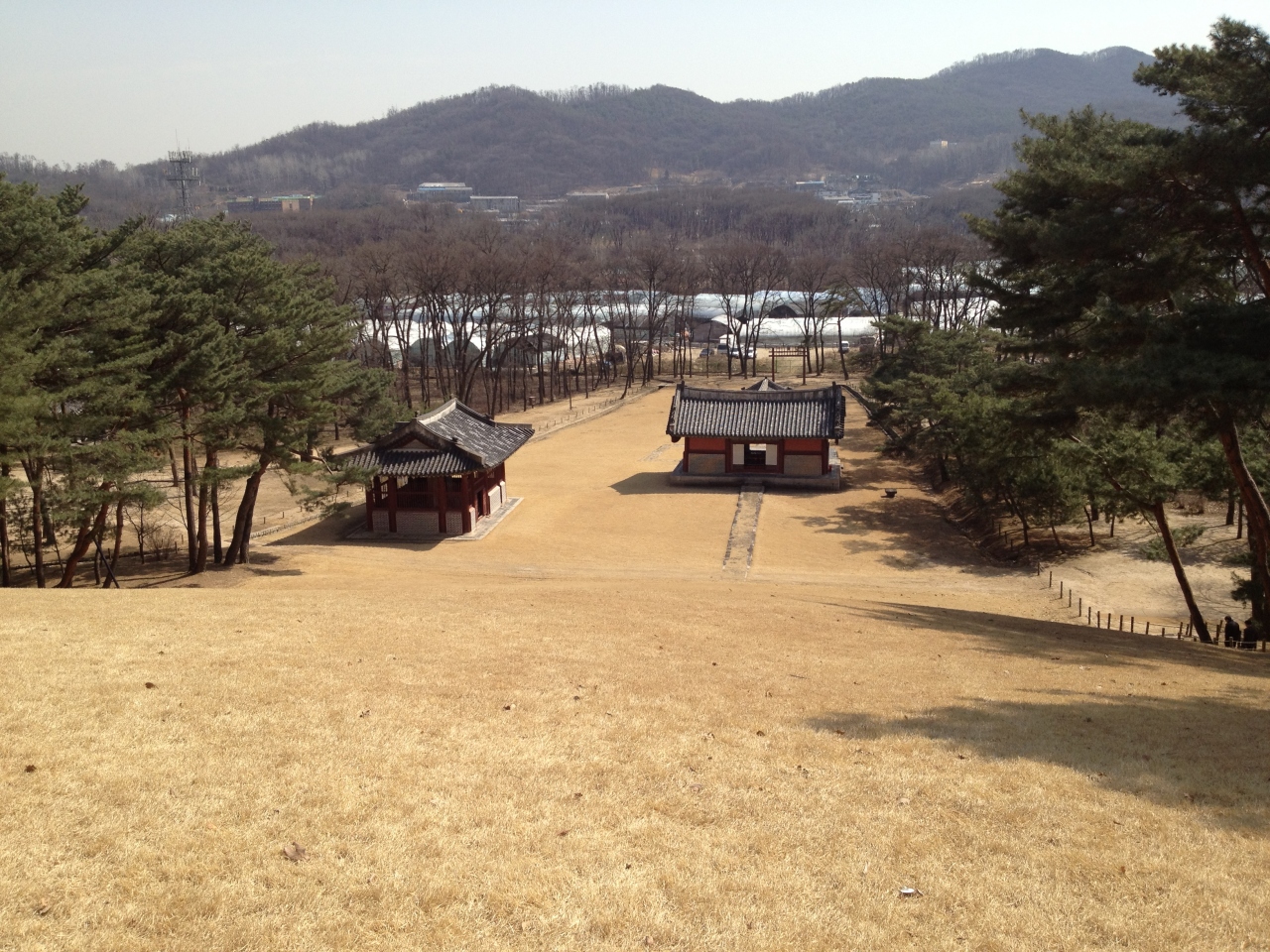 当日は車で連れて行ってもらったのですが、市街地から離れて自然が多くなってきた場所にポツンとありました。ハングルがちゃんと読めませんでしたので後で知ったのですが、朝鮮王朝第3代の太宗王と皇后様のお墓だと聞き、それで自然豊かな場所であることに納得がいきました。(お墓の周りに繁華街など作れないですよね。。)