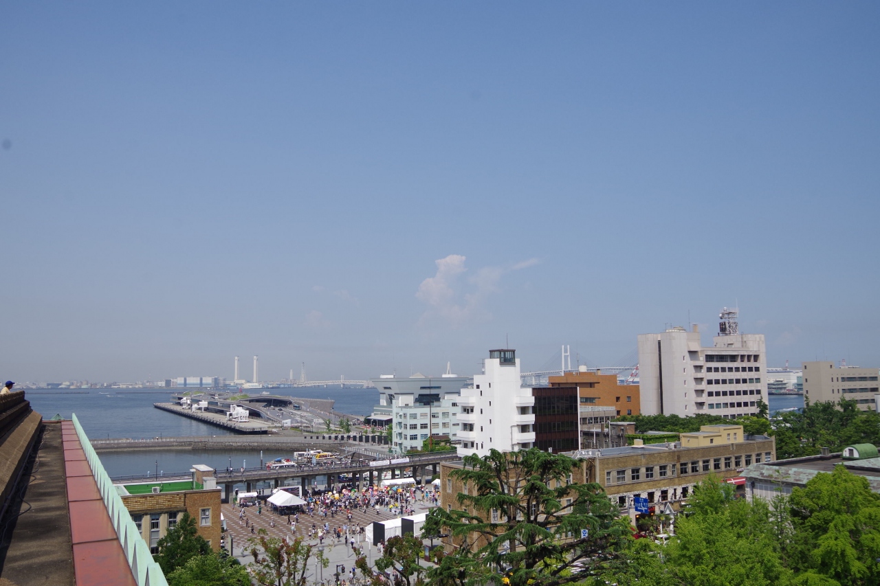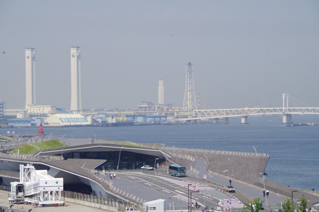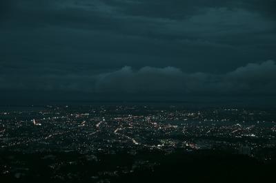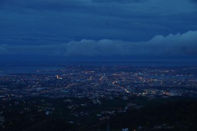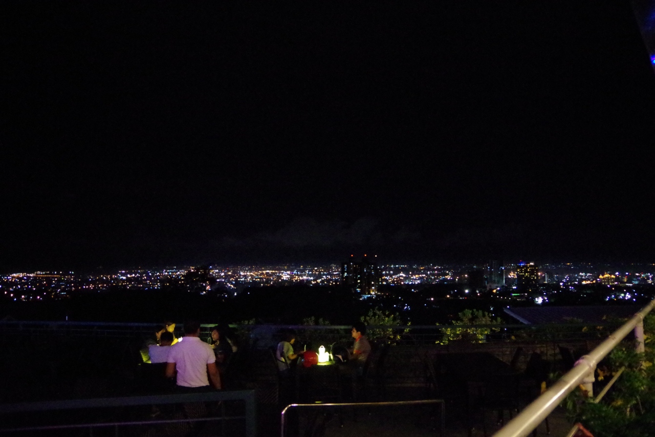 屋外の席で、いい風に吹かれ、綺麗な夜景を見ながら