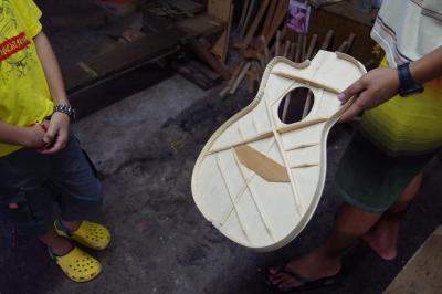 マクタン島にいくつかある、手作りギター工場の一つ。