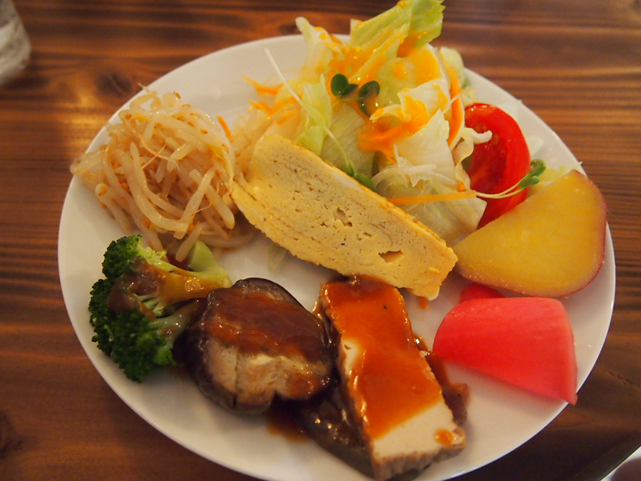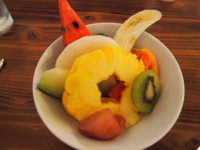 どれもたっぷりのサラダとデザートにてんこ盛りのフルーツがついてます。