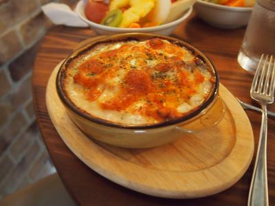 ランチにはペスカトーレ・ドリアやムサカ、コンフィ、パスタ等があります。