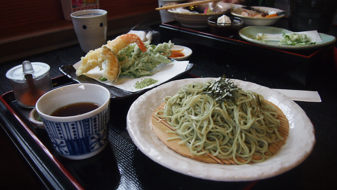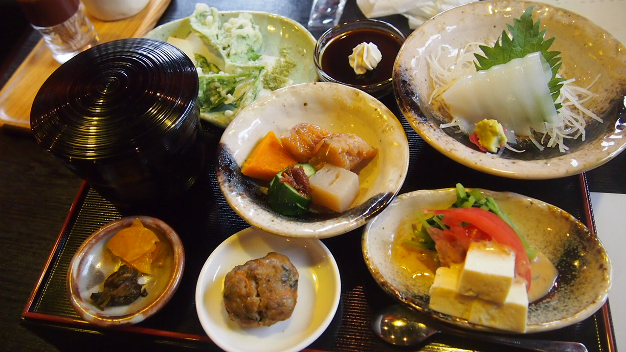お刺身、煮物、天ぷらなどいろいろついていて、楽しい御膳でした。