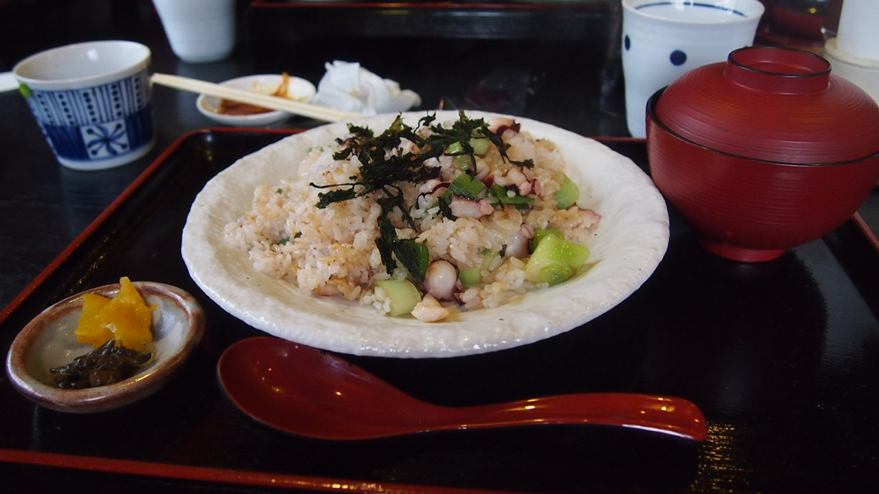 お店で、明日葉つけめん、タコチャーハン、島ずしを追加で注文し、おいしい八丈島ランチになりました。- 旅行時期