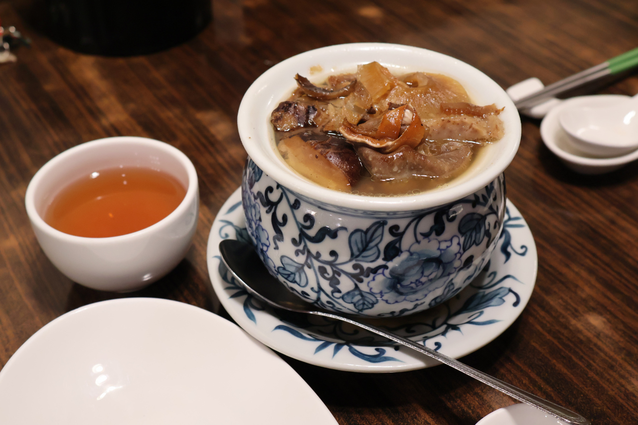 通称「ぶっ飛びスープ」は、修行僧でさえも寺の塀を飛び越えてやってくる食べに来るという逸話があることから、中国語で「佛跳牆」、英語で「Buddha Jumps Over the Wall Soup」と呼ばれているもの。もともとは中国福建省の料理ですが、台湾では有名だそうです。