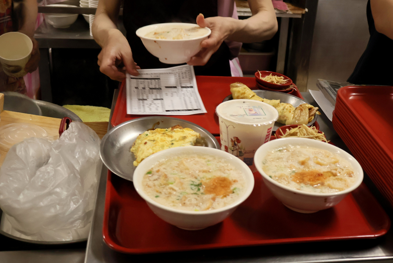 肉団子入りにお粥 6ドル、ミルクティー 1.4ドル(2025年6月時点)- 旅行時期