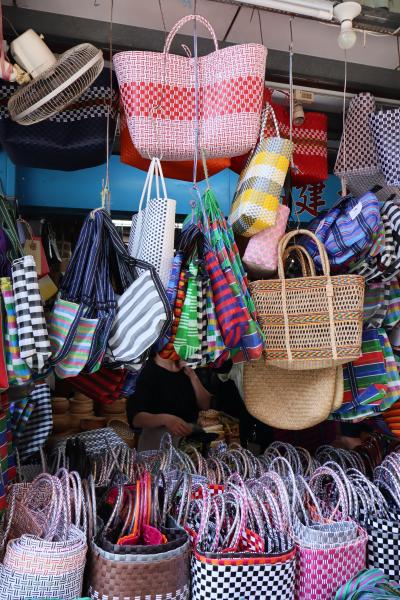 「高建桶店」は梱包用ポリプロピレン・バンドのカゴバッグの種類が、ほかの店舗よりも豊富だと感じました。「漁師網バッグ」の色もカラフルです。