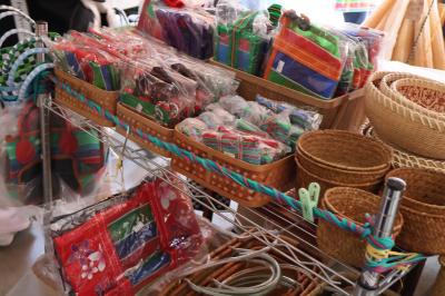 「漁師網バッグ」にお洒落さがない代わり、7号サイズが65台湾ドルとお安い。梱包用ポリプロピレン・バンドのカゴバッグ、小物も少しありました。