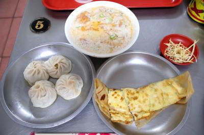 MRTの台北駅と中山駅の中間にあるローカル・レストラン「四海豆漿大王」は、人気の店らしく列ができていましたが、さほど待たずに席につけました。