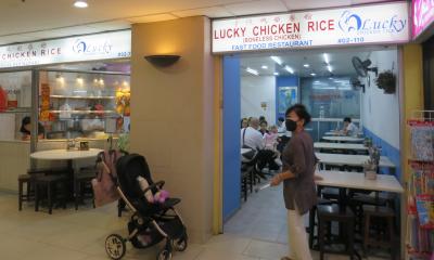 「ラッキー・チキンライス」は、オーチャードらしからぬローカル度満載のショッピングセンター「ラッキー・プラザ」2階にあるハイナンチキンの有名店です。店内はごくごくシンプル。