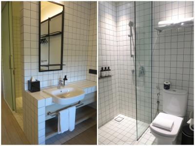 部屋は機能的で清潔。バスルームはシャワーのみで、洗面台はベッドルームの一角に。泊まった部屋はシンガポールの観光スポット「フォートカニング・パーク」側だったので、毎日、丘の緑に癒されました。