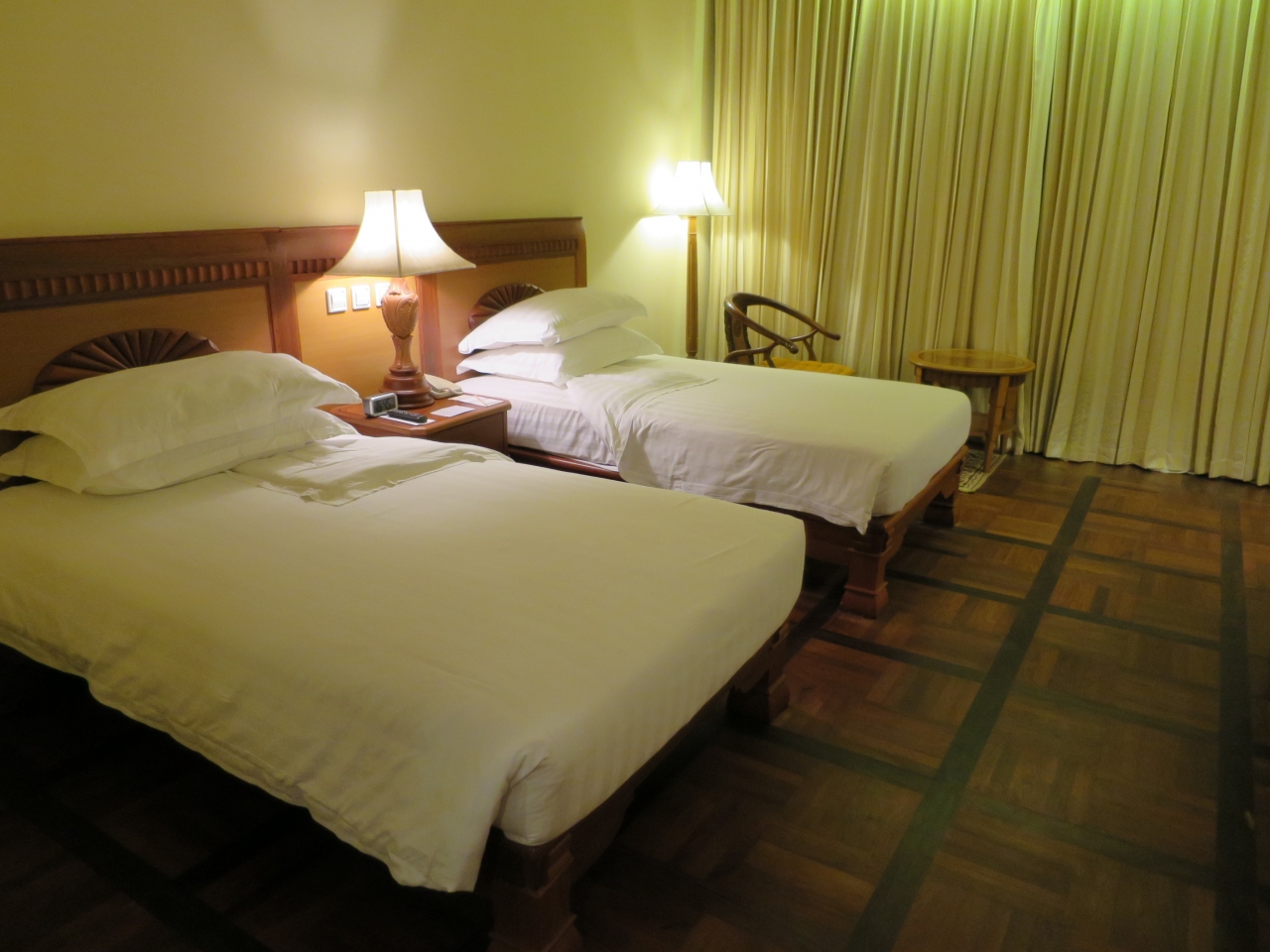 ホテルの予約サイトで、ツインベッドルームがあるホテルを探しましたが、ダブルベッドのみのホテルばかりでした。直接問いあわせれば、ツインベッドルームもあったのかも知れませんが、ここに決めました。部屋が2階の端だったのはよかったのですが、下にエアコンの室外機があって、少しうるさかったのが難点です。部屋をかわれば、気にならなかったかもしれません。