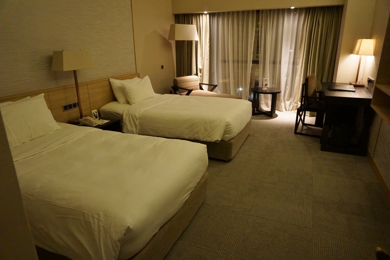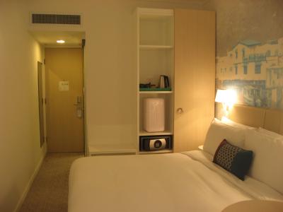 ツアーで利用。ツインの部屋だった。デスク、冷蔵庫、洋服ダンスの中にセイフティーボックスもあり、設備的には整っているが、とにかく狭い。