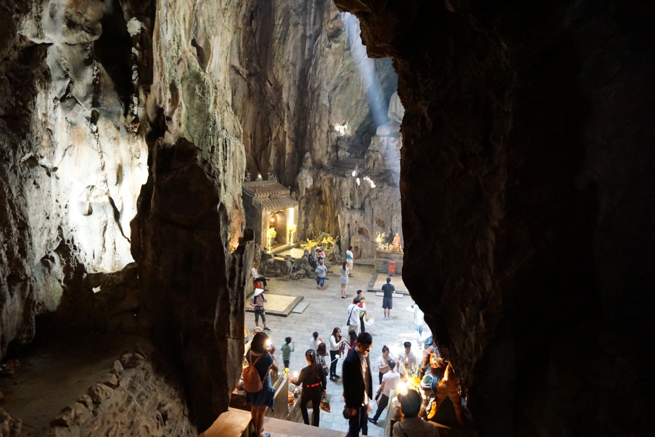 大理石の山「五行山」が目の前。ホイアン行きのシャトルバスもあって、便利でした。