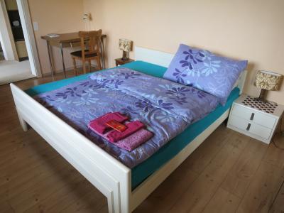 - ベランダ付きで、広くて、ベッドも大きく快適。冷蔵庫、湯沸かし器、アイロンまでありました。洗面台がバスルームの外にあって便利でした。