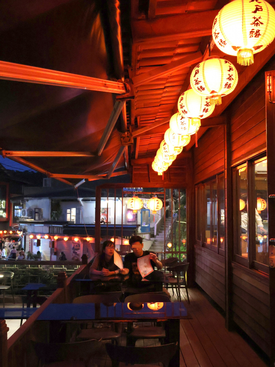 独特な雰囲気を持つ九分のランドマーク的「阿妹茶楼」、次々とお客さんが入ってきて、果たして眺めの良い席に座れるのだろうかと心配していましたが、店員さんに言われるがままに階段を上がり、海を望めるテラスに案内されました。