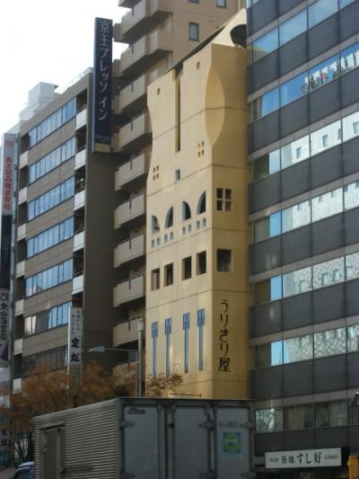 以前オフィスビルがあった場所に立った、細いホテルです。 東銀座とありますが築地の方が近いです。 黄色いビルが目印です。