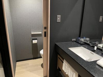 ホテルの部屋は広くて快適。洗い場付きのバスルームも広々。トイレとお風呂も別で快適でした。