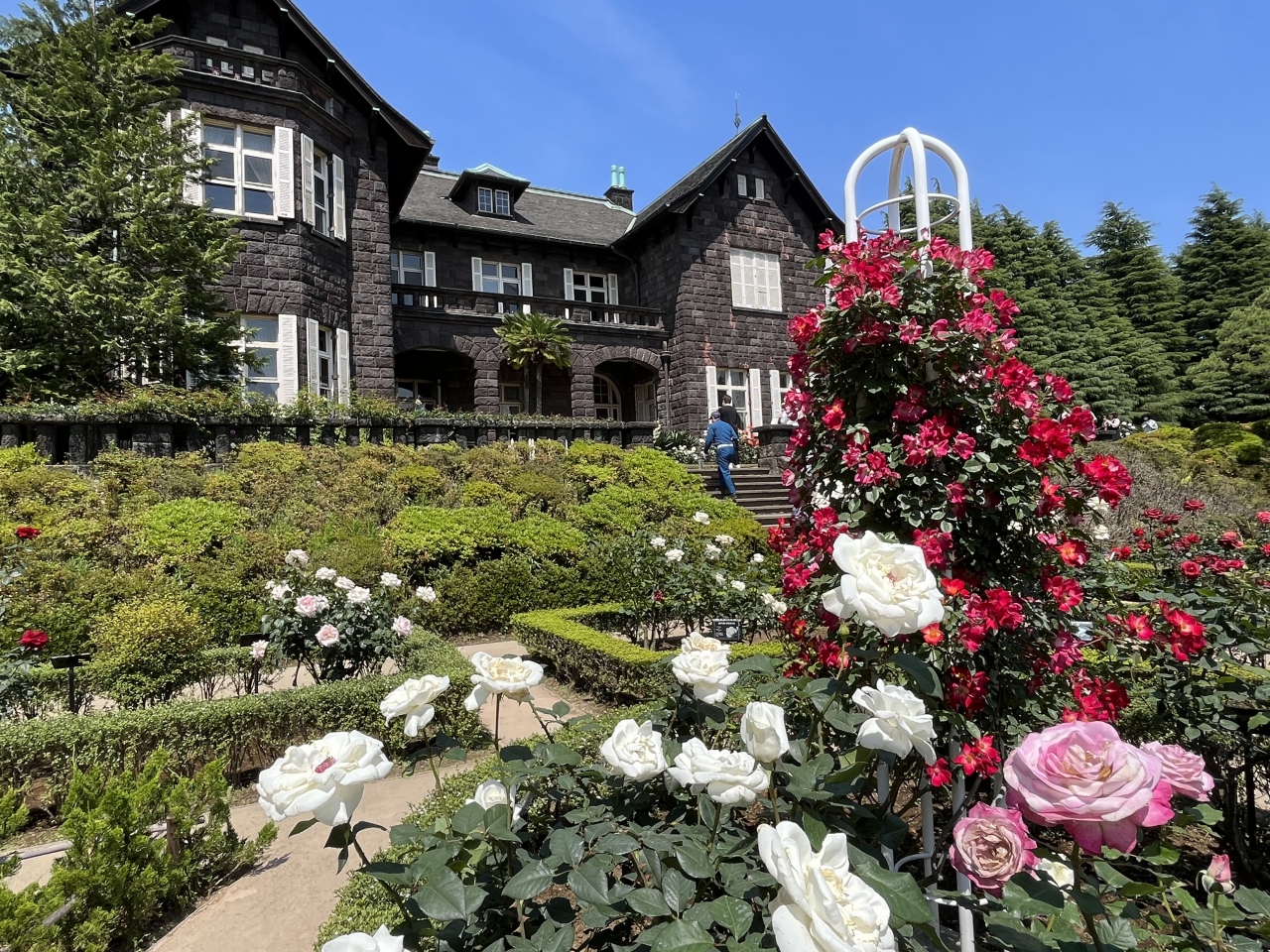 洋館をバックに広がるバラ園は、コンパクトですが、ヨーロッパの庭園様式を踏襲しており、写真映えがするスポットです。