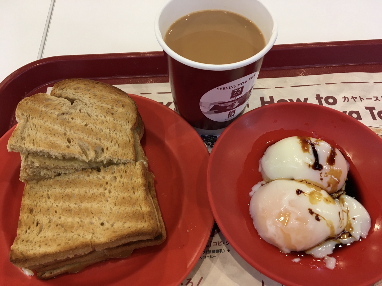 カヤトーストと温泉卵、飲み物のセットで600円です。