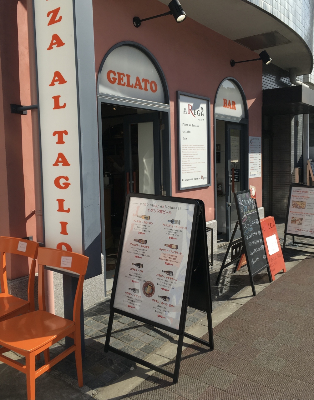 いかにもローマの街角にありそうな外観の「ア・レガ」は、その四角いピッツァとジェラートを出す小さな店です。