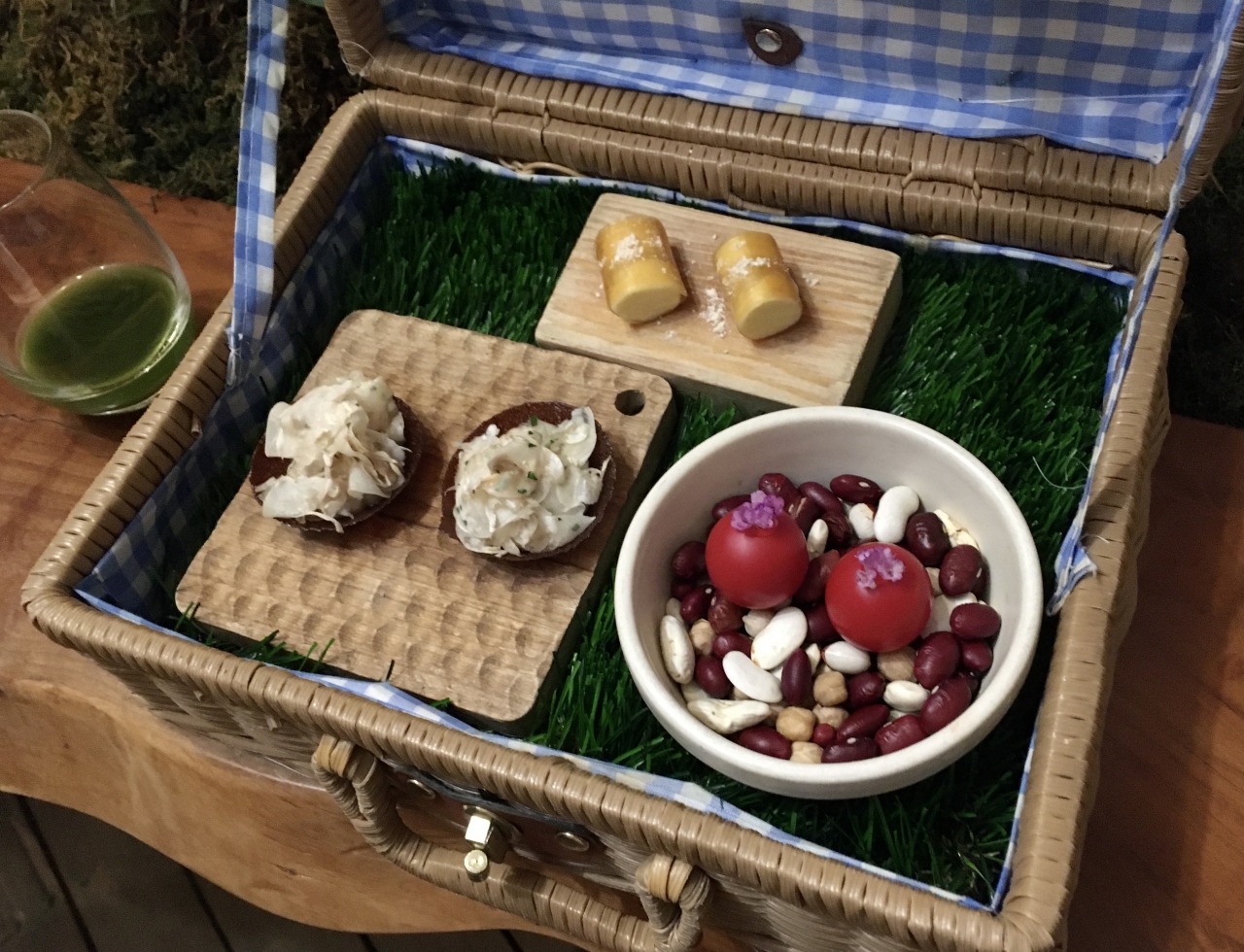ランチでは1箇所ですが、ディナーでは場所を変えて2箇所でフィンガーフードをつまみ、それからダイニングに通されて着席でお食事になります。