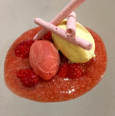 銀座の一流レストランなのでワインの値付けは高いですが、ソムリエさんと相談して比較的安くて料理の合うものを選んてもらいました。これが素晴らしいマリアージュで、料理の味が3倍くらい引き立ちました。