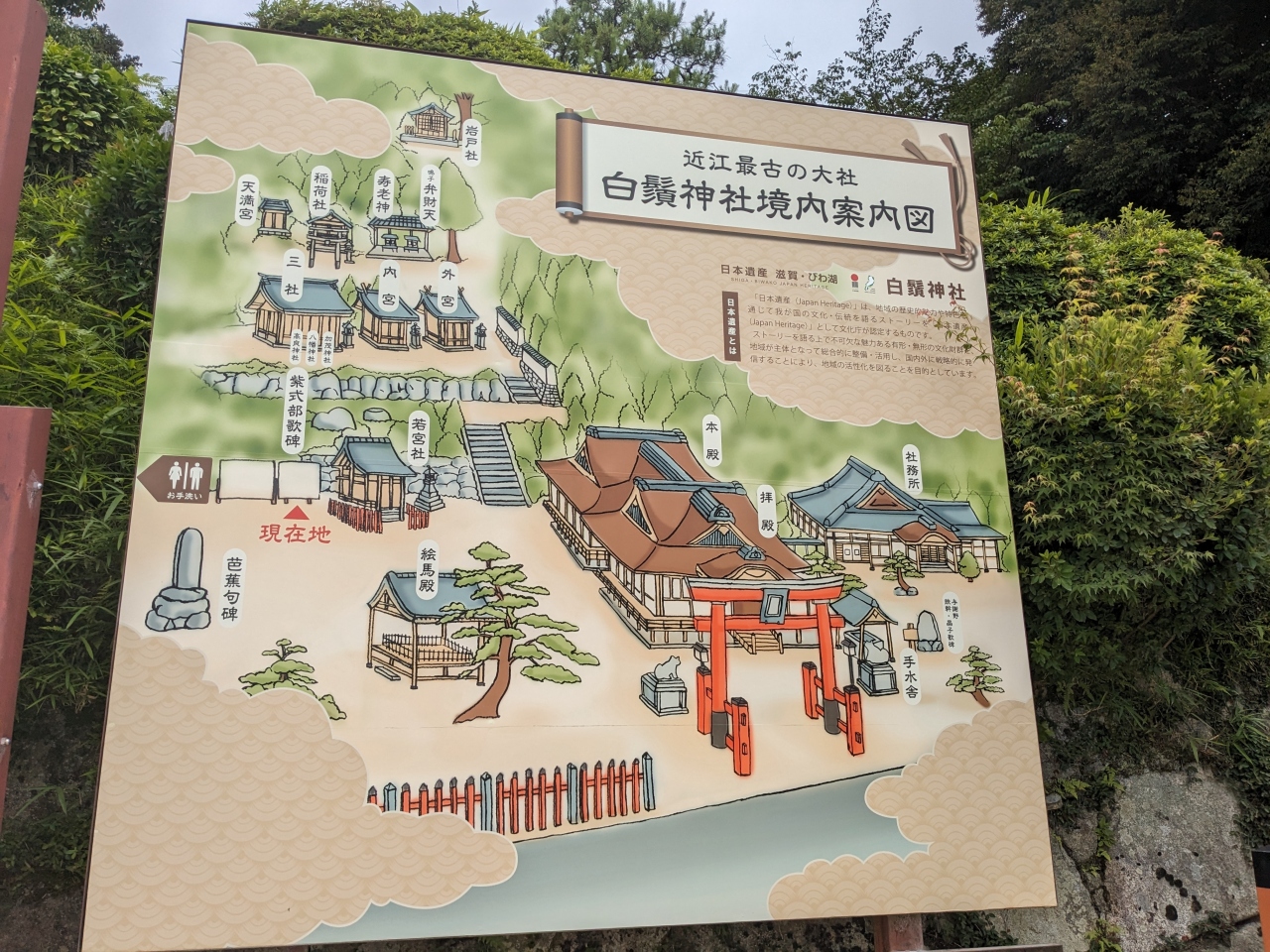 神社には無料の駐車場があり、芭蕉の句の石碑もありました。