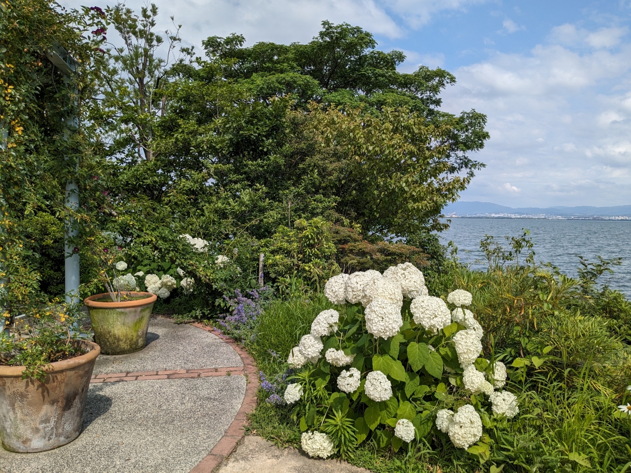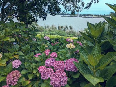 湖畔のあじさいも色とりどりで、癒されました。