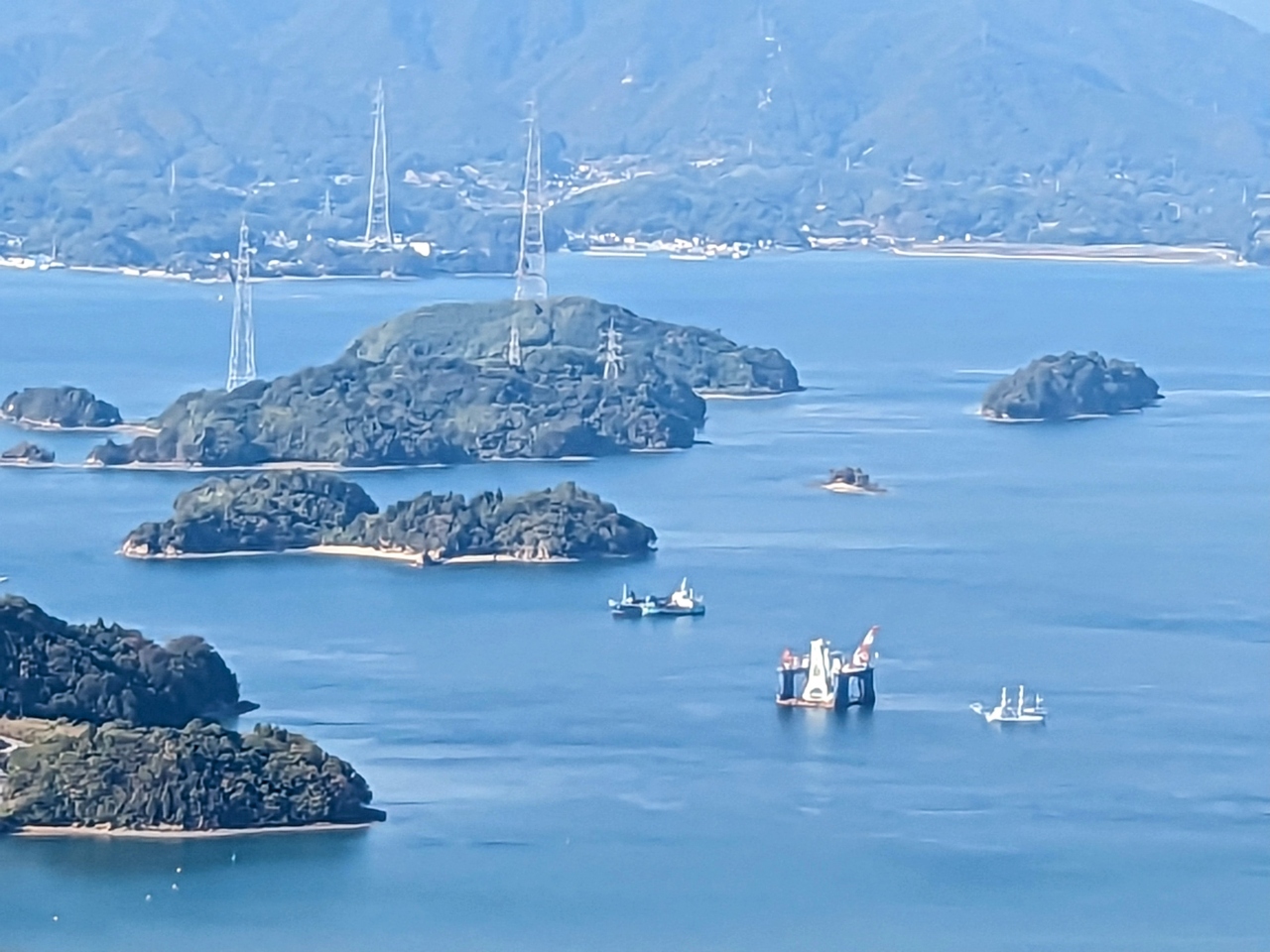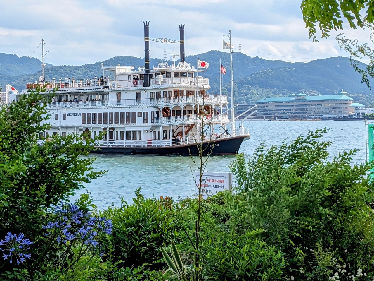 - フェリーで30分、穏やかな波一つ無い瀬戸内海を渡ります