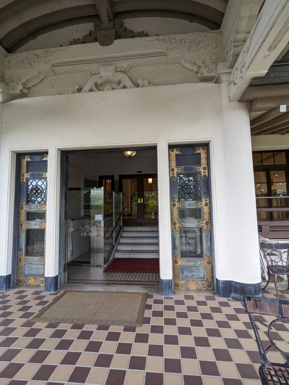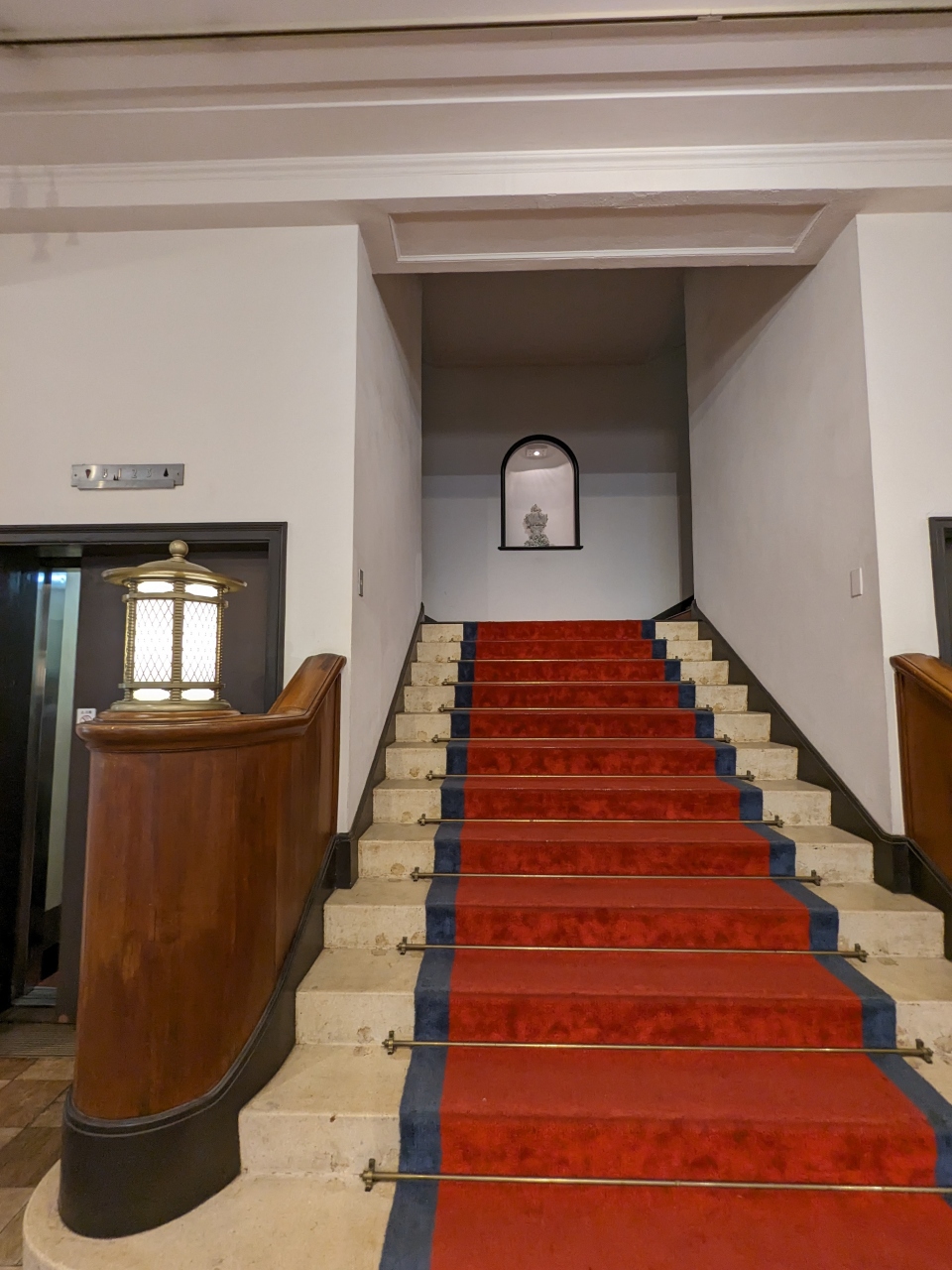 赤い絨毯の階段以外にもレトロなエレベーターもありました。- 旅行時期