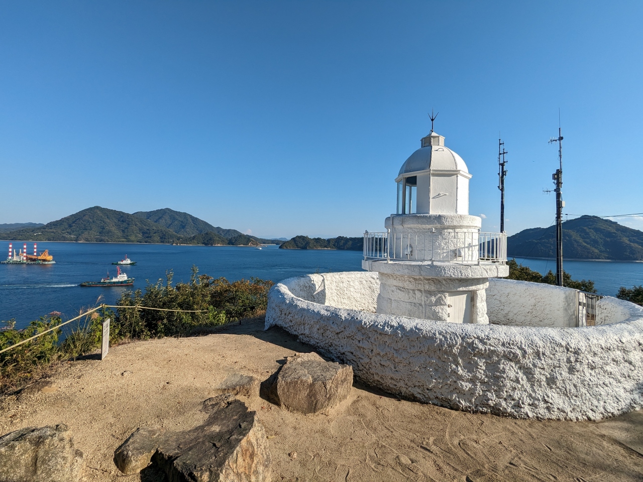 日本初の無人灯台の一つで、現役で船の安全を見守っています。