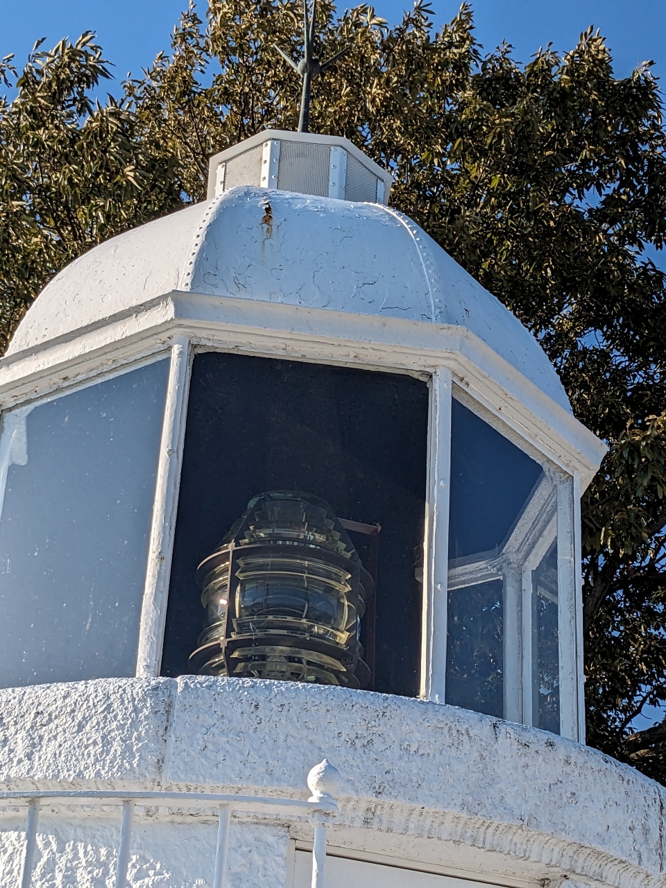 背の低い灯台なので、レンズの中まで見えています。レンズの中の赤いアクリル板の角度で、反射光を送り浅瀬を知らせているとのことです。- 旅行時期