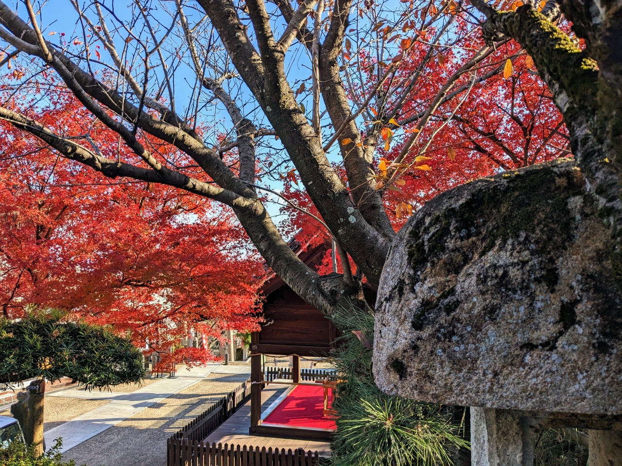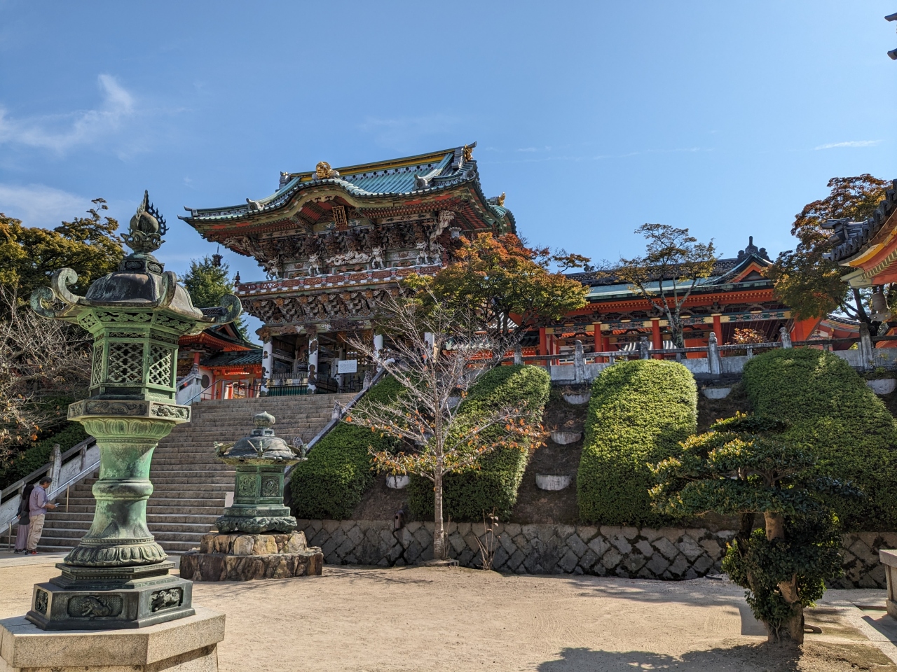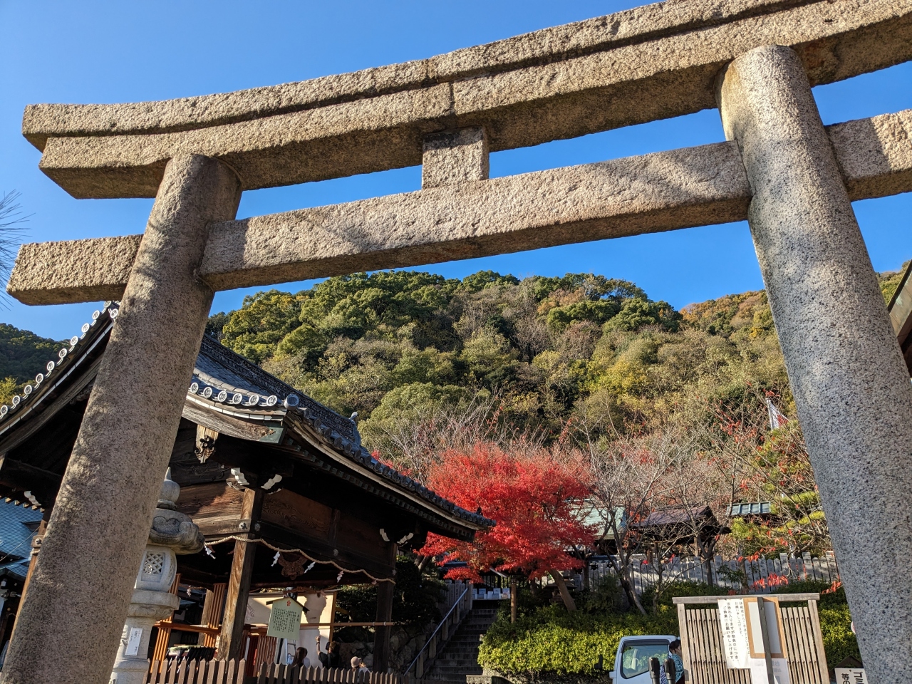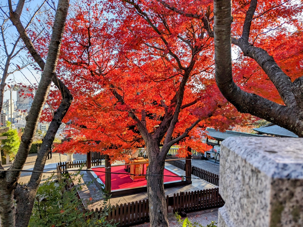 歴史ある神社でありながら、神戸の街並みと異人館を臨める絶景、そして紅葉も。
