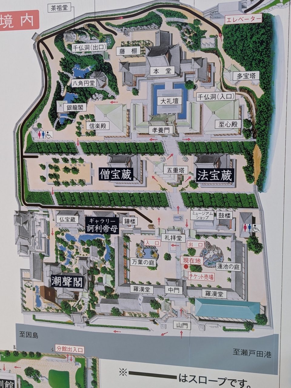 耕三寺の奥の方にあり、途中エレベーターがあり、カフェもあります。